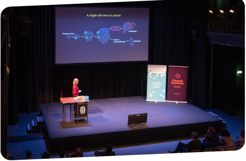 Cancer researchers from all over the Netherlands gather for the annual Oncode Annual conference at the Royal Tropical Institute in Amsterdam. A quick look at the audience showed that not only the speakers are a dynamic mix of people. It is safe to say that the cancer research community is young, diverse and very motivated to create impact. In addition to the annual conference, a Scientific meeting is also held every year. Apart from inspiring talks, this two-day event also offered other engaging ways to stimulate interaction: a science booth market place and parallel sessions.